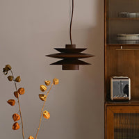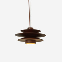 Experience the warmth of refined craftsmanship with this stunning tiered walnut pendant, designed to create a soft, glare-free ambiance while serving as a sophisticated sculptural centerpiece.