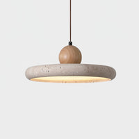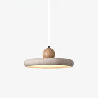 Aethell | Modern Circular Travertine Stone And Wood Pendant Light