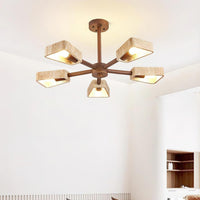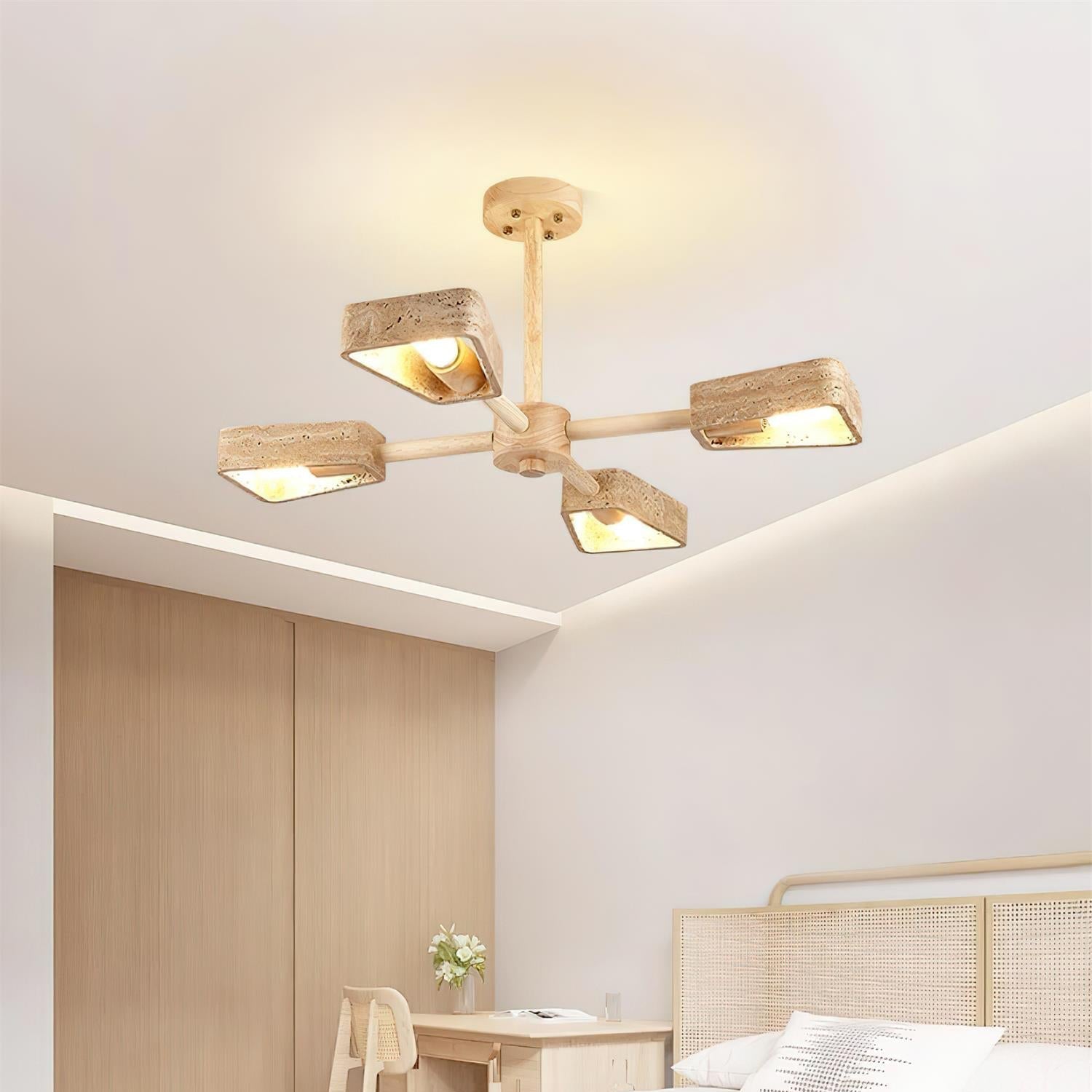 Calidris | Natural Travertine Stone Fan Silhouette Wood Chandelier