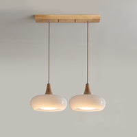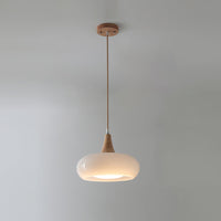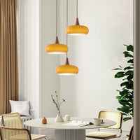 Charlotte | Mid Century Wood and Amber Glass Pendant Light