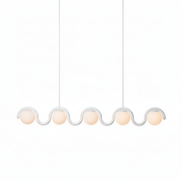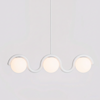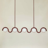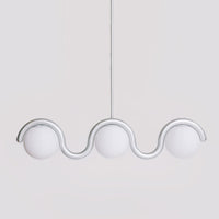 Drawing inspiration from the fluid elegance of Art Nouveau, this chandelier features a graceful curving metal tube that encircles spherical glass globes to create a harmonious and sophisticated visual masterpiece.