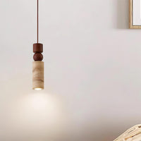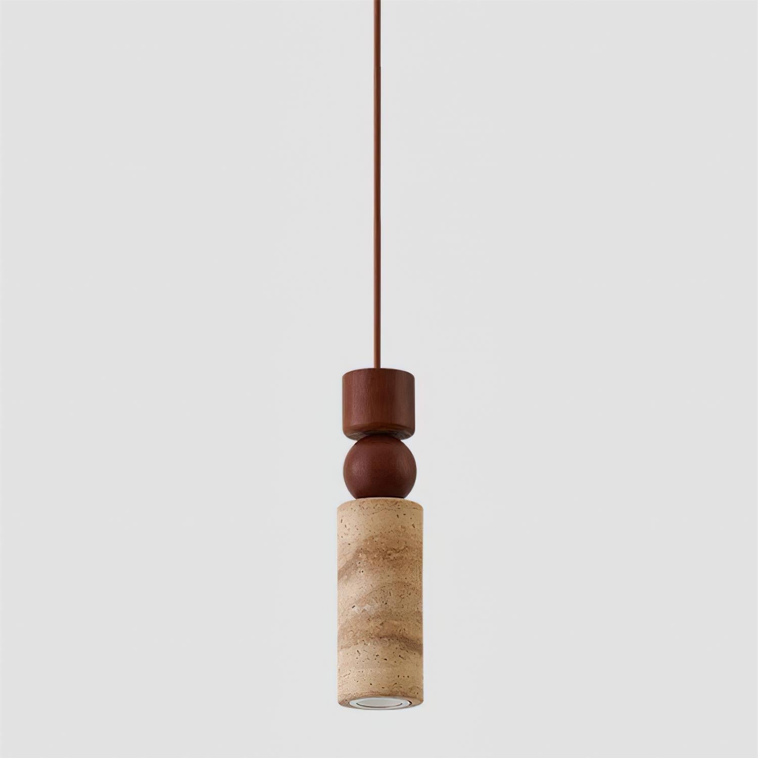 Elvara | Minimalist Nordic Travertine Wood Column Pendant Light