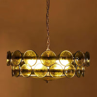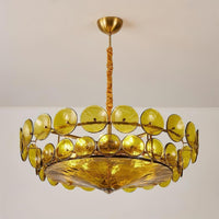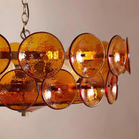 Karys | Elegant Tiered Round Amber Glass Drum Chandelier
