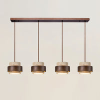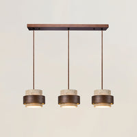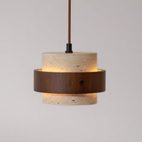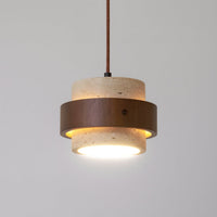 Experience the perfect marriage of organic stone and warm timber. This exquisite pendant lamp features authentic travertine textures and walnut accents to create a sophisticated, calming atmosphere in any home.