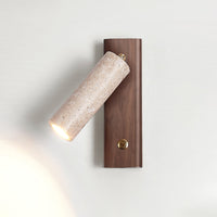 Elevate your sanctuary with this exquisite cylinder sconce, merging raw earthen yellow travertine with warm walnut accents. This sculptural masterpiece delivers versatile, adjustable illumination through a sophisticated, minimalist silhouette.