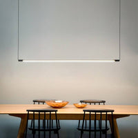 This linear pendant light embodies advanced aesthetics with its clean, minimalist frame. It perfectly bridges the gap between modern chic and timeless design, creating an overall feeling of spaciousness and brightness.