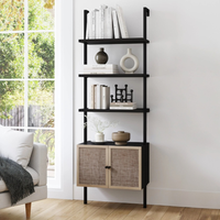 Zenith | Modern Ladder Bookshelf And Rattan Door Storage Cabinet with Wood Shelves