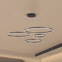 This pendant light features a striking multi-ring design that masterfully blends contemporary elegance with high-performance illumination. Its sleek metal finish and halo silhouette create a captivating, sophisticated focal point.